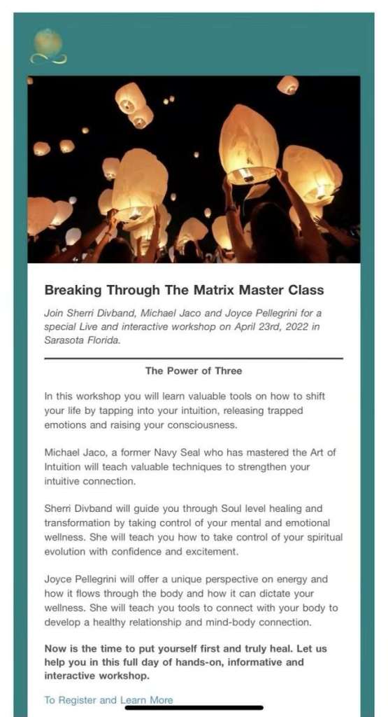 You are cordially invited to be a part of the BREAKING THROUGH THE MATRIX MASTER CLASS~~Hosted by Sherri Divband, Joyce Pellegrini and myself!!๐ฅ๐โจ๐